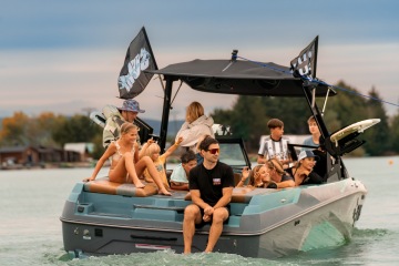 Rezervuj si jízdu a svez se s námi na nové AXIS A245! Na loď můžeš vzít celou partu. Surf i vestu ti rádi zapůjčíme.